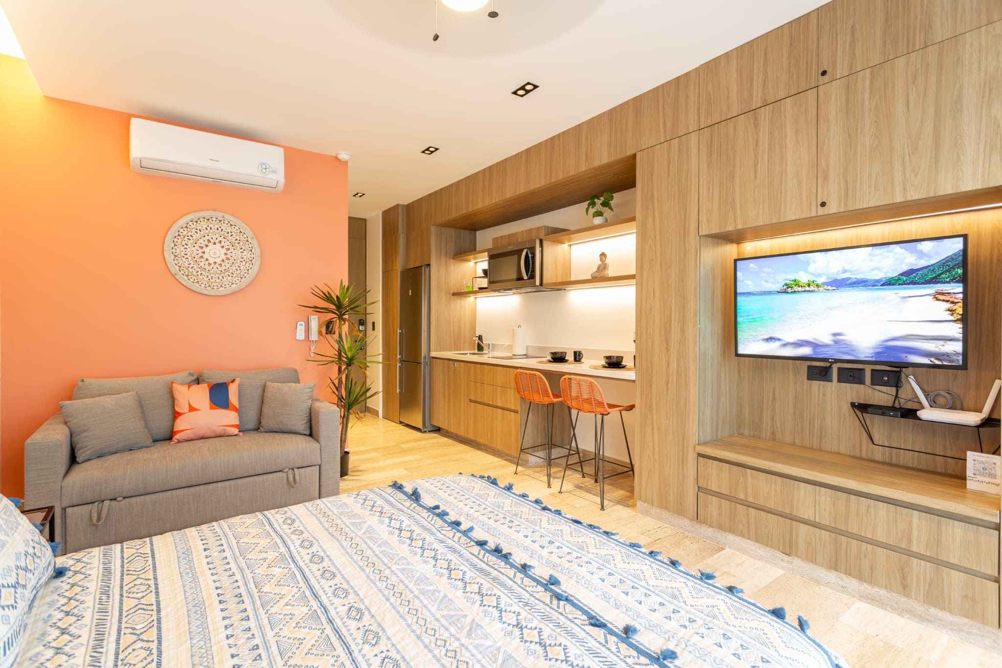 Los estudios más amplios y lujosos en el corazón de Playa del Carmen, ubicados a solo unos minutos de la acción. Disfruta de la combinación perfecta de comodidad y vida vibrante, a pocos pasos de la Quinta Avenida, cerca de farmacias y restaurantes. Vive