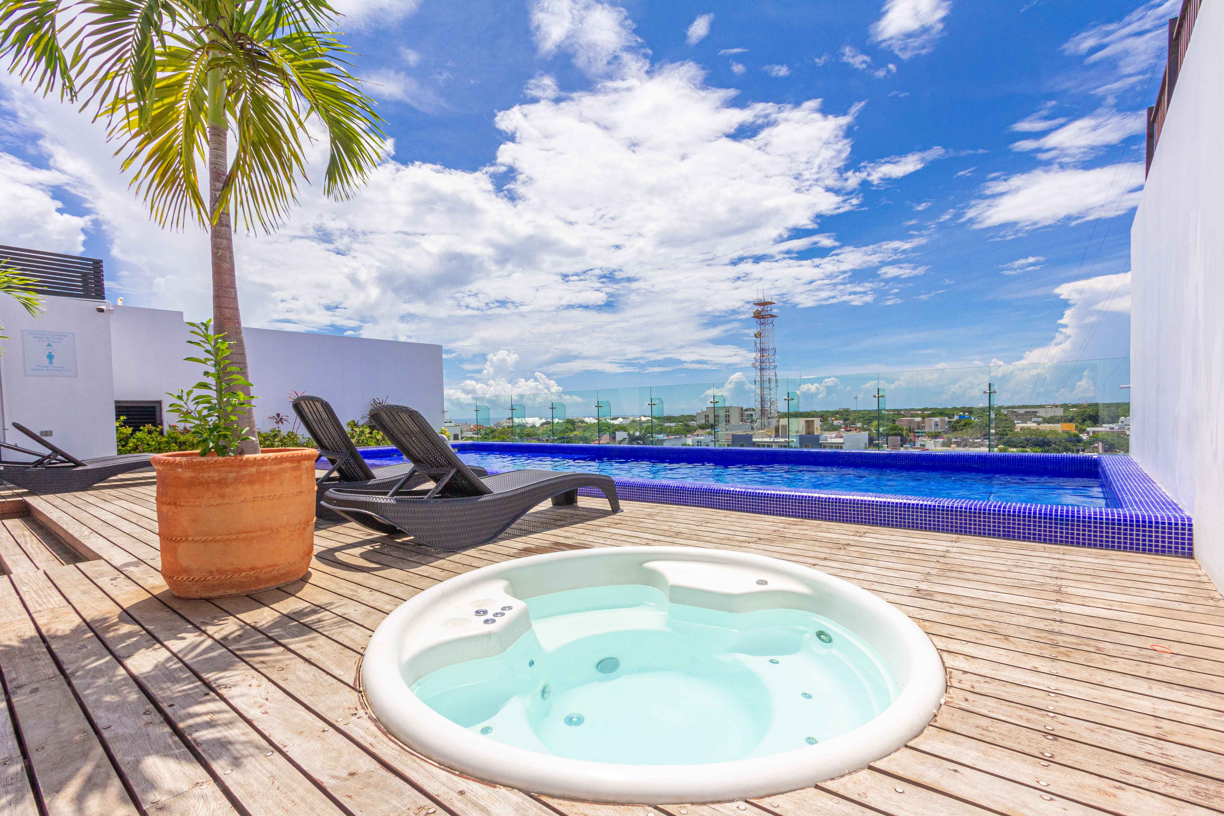 Disfruta de un lujoso penthouse de una recámara en The City, ubicado a pocos pasos de la playa y con alberca privada. A solo unas calles de lavanderías, la Quinta Avenida, supermercados, restaurantes, farmacias y una vibrante vida nocturna, todo lo que ne